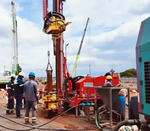 Drilling campaign and installation of groundwater observation wells (14 wells, in a basement context). Tailings Management Facility, Ambatovy, Tamatave.
